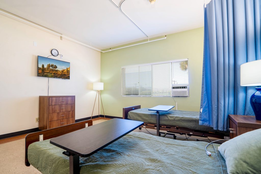 At Joshua Tree Post Acute, our rooms are thoughtfully designed to provide a peaceful retreat for healing. Whether you choose a private or semi-private space, you’ll enjoy calming décor, essential amenities, and a warm, welcoming atmosphere. Each room offers the privacy, dignity, and comfort you deserve—so you can focus on your recovery with peace of mind.